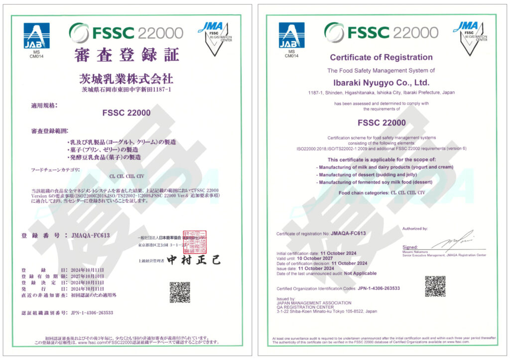 FSSC 22000 V6審査登録証